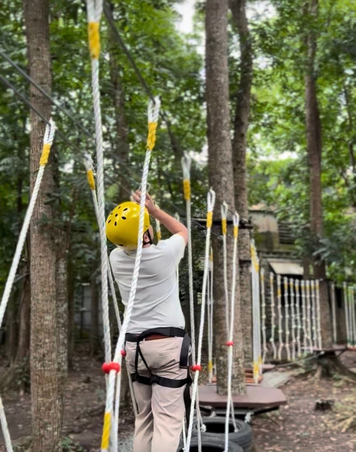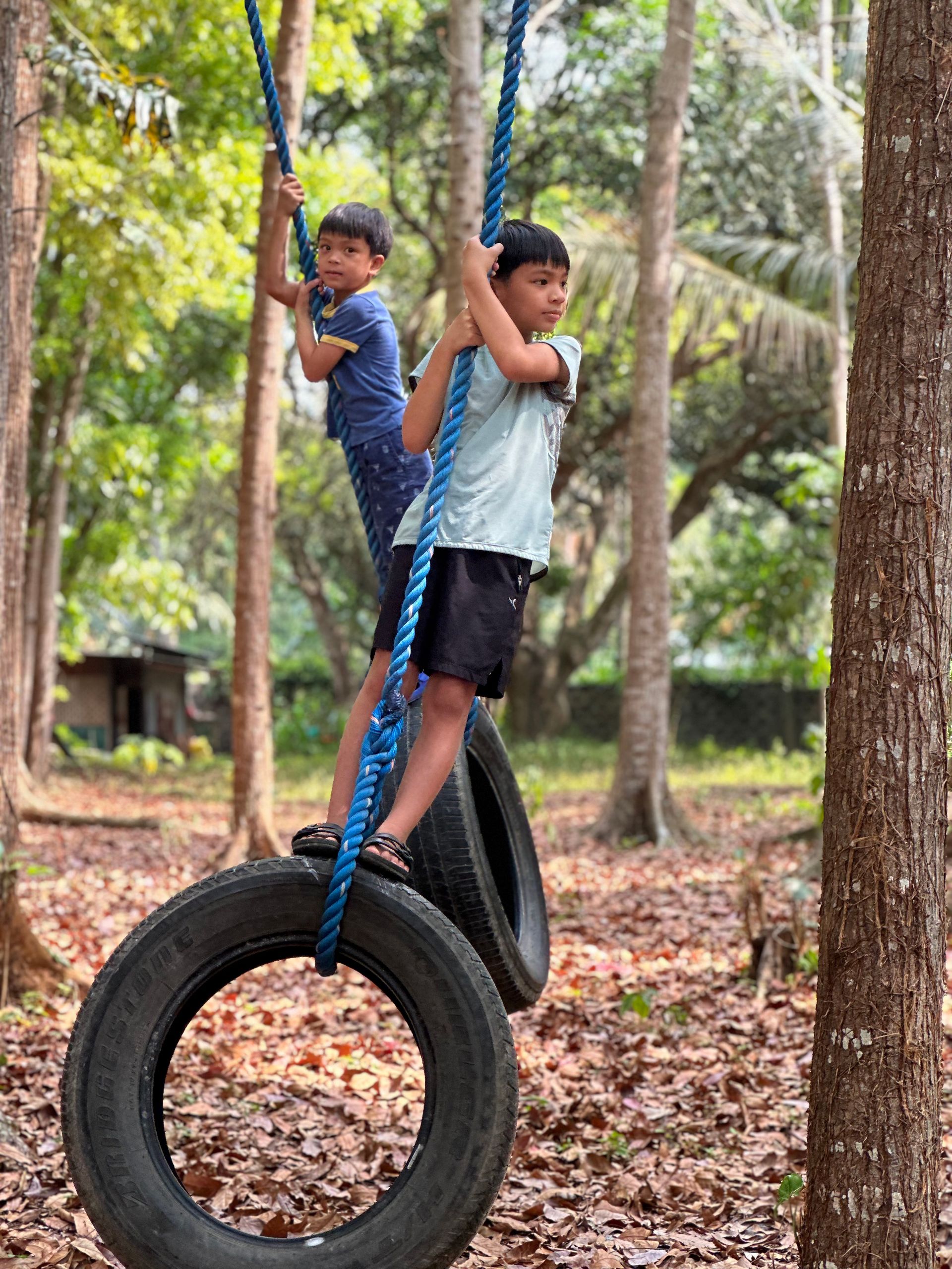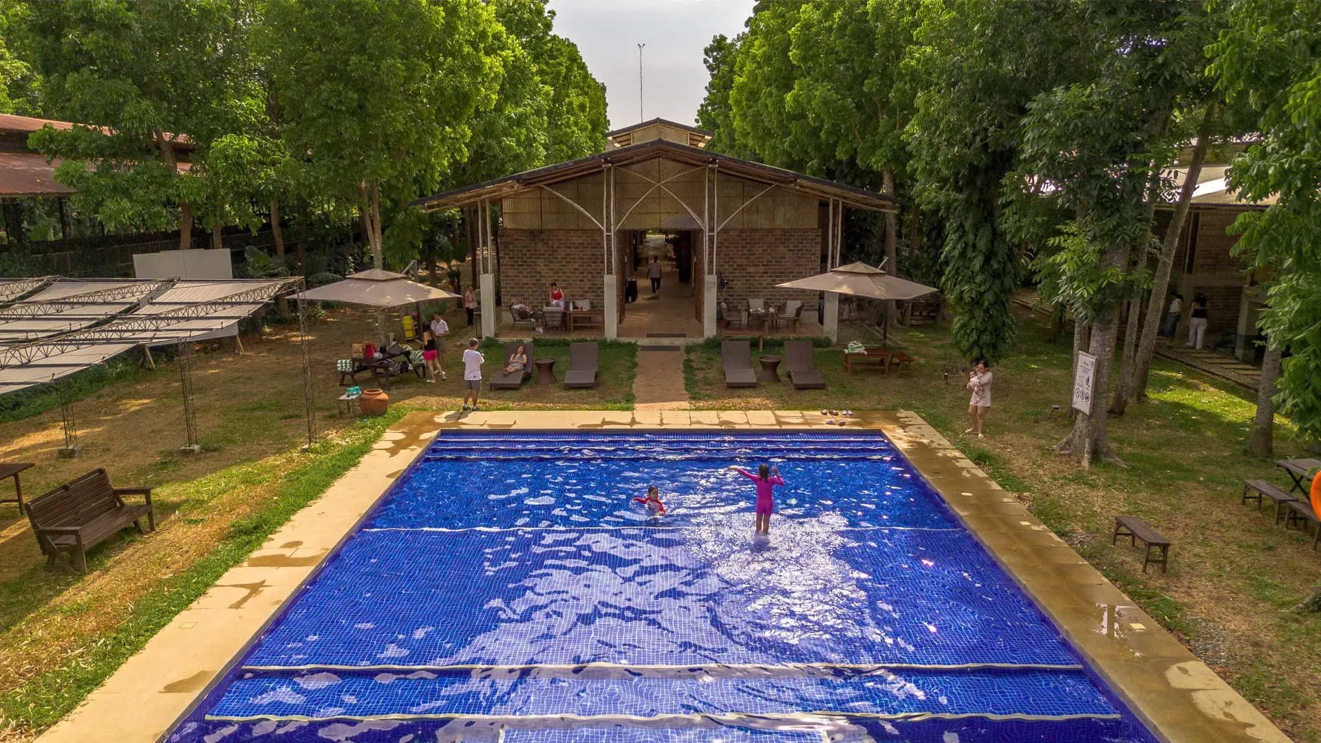 Beside the restaurant is a 30-meter long pool with a separate section for kids & babies. There is a shaded lawn by the pool with picnic tables and lounge chairs. We also have a forest playground with swings, nets, and a rope course. The bamboo orchard and nature trail is available for people who want to walk, run, or bike around. We also have 2 pickleball courts and a half basketball court.
