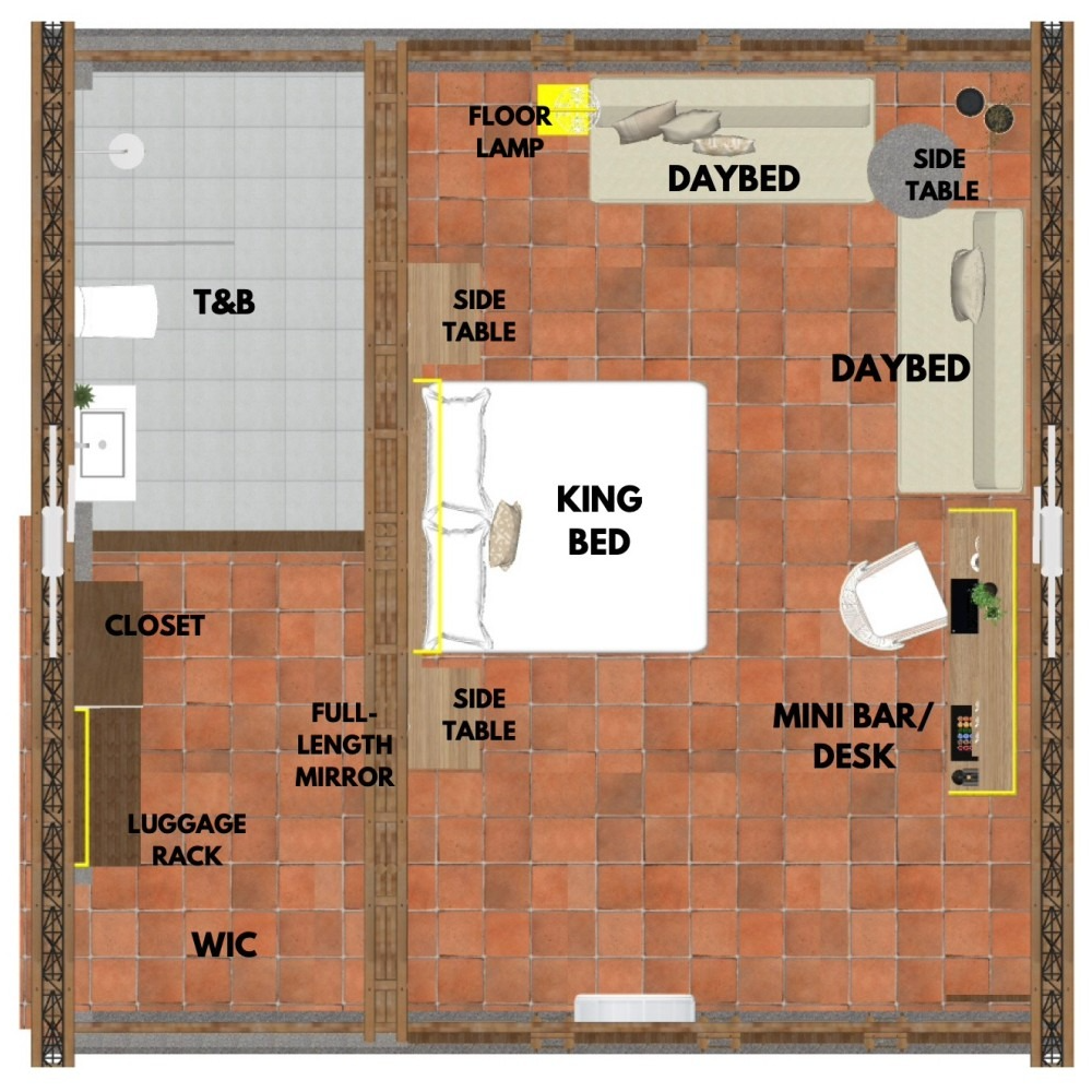 Our Master Villa offers the most spacious and private stay on the farm. At 80 sqm, this thoughtfully designed villa is ideal for families or guests planning a more relaxed escape. The villa is furnished with one king bed and one full bed with a pull-out, along with an en suite toilet and bath, a study desk, mini bar, dining set, and TV. It is also the only accommodation on the farm equipped with WiFi, making it a comfortable option for those who wish to stay connected while still enjoying the quiet rhythm of farm life.