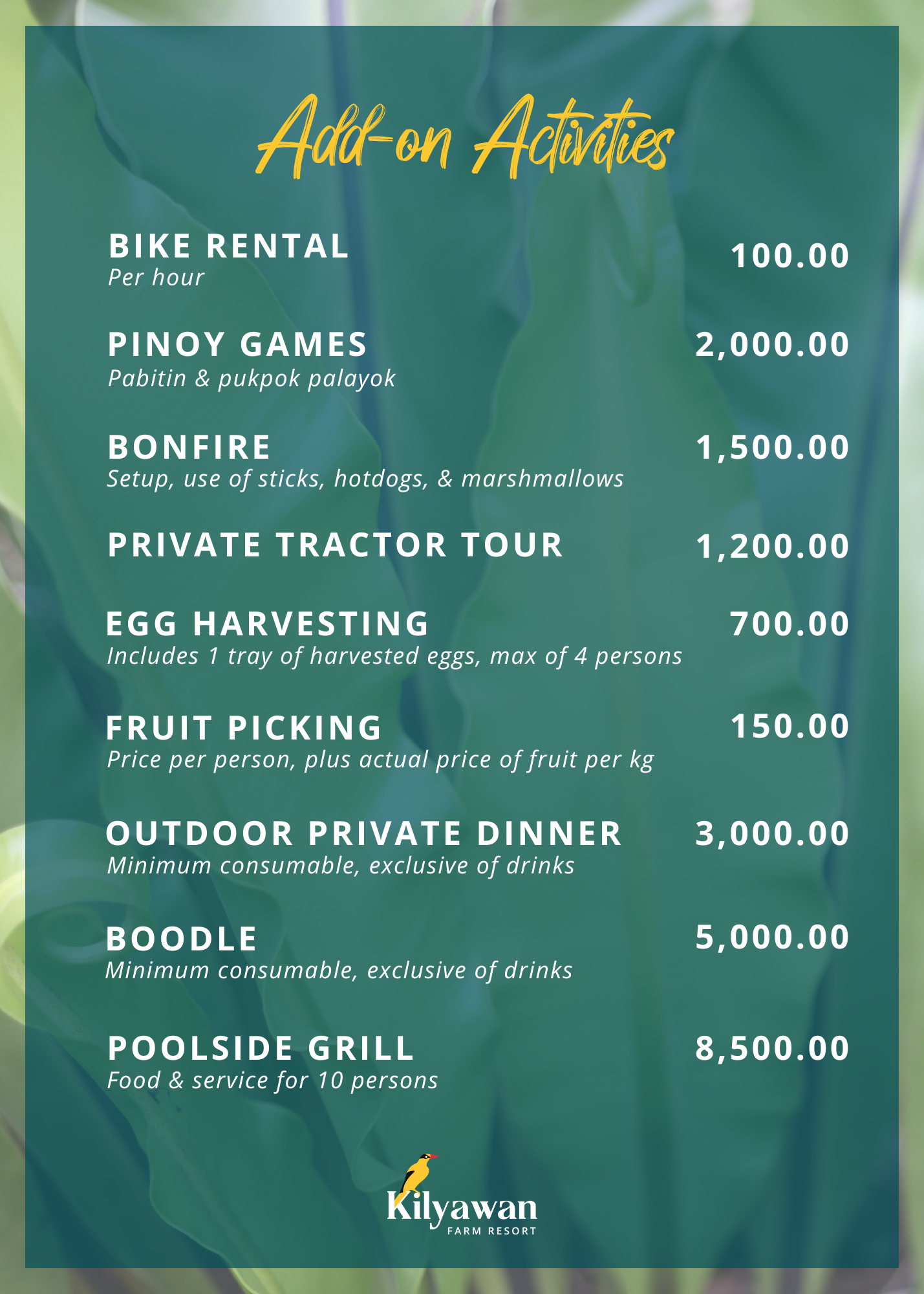 Gather around a bonfire as the day winds down, enjoy lighthearted Pinoy games for kids, share a hearty boodle feast, or try hands-on activities like egg harvesting. Each one adds a little extra warmth and fun to your time on the farm.
